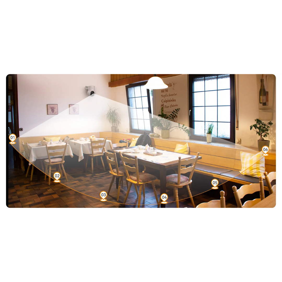 Giro horizontal de 0° a 355° y inclinación de -5° a 80°: El cabezal eléctrico del Ranger 2 2MP le permite girar 355° e inclinarse de -5° a 80°, lo que garantiza que se cubra cada rincón de la habitación.